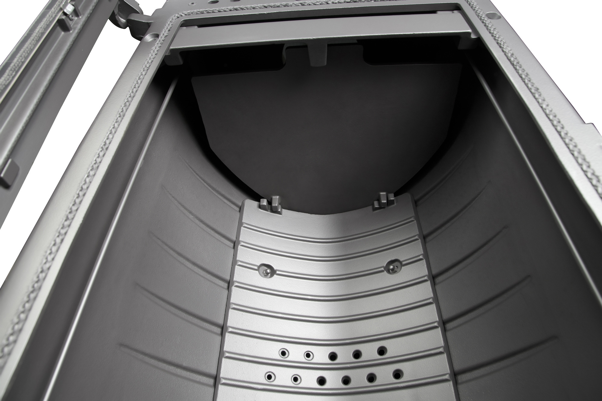 Камин оснащен зольником для удобной очистки и обладает высоким коэффициентом полезного действия (КПД) на уровне 79%, что гарантирует эффективное использование топлива и экономию энергии. Вторичный дожиг дает возможность максимально использовать потенциал дров, обеспечивая длительное время горения.