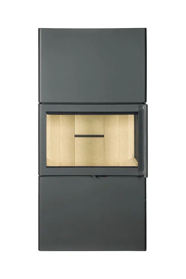 - Камин покрыт высококачественной черной теплостойкой краской подчеркивающей его строгие формы.
