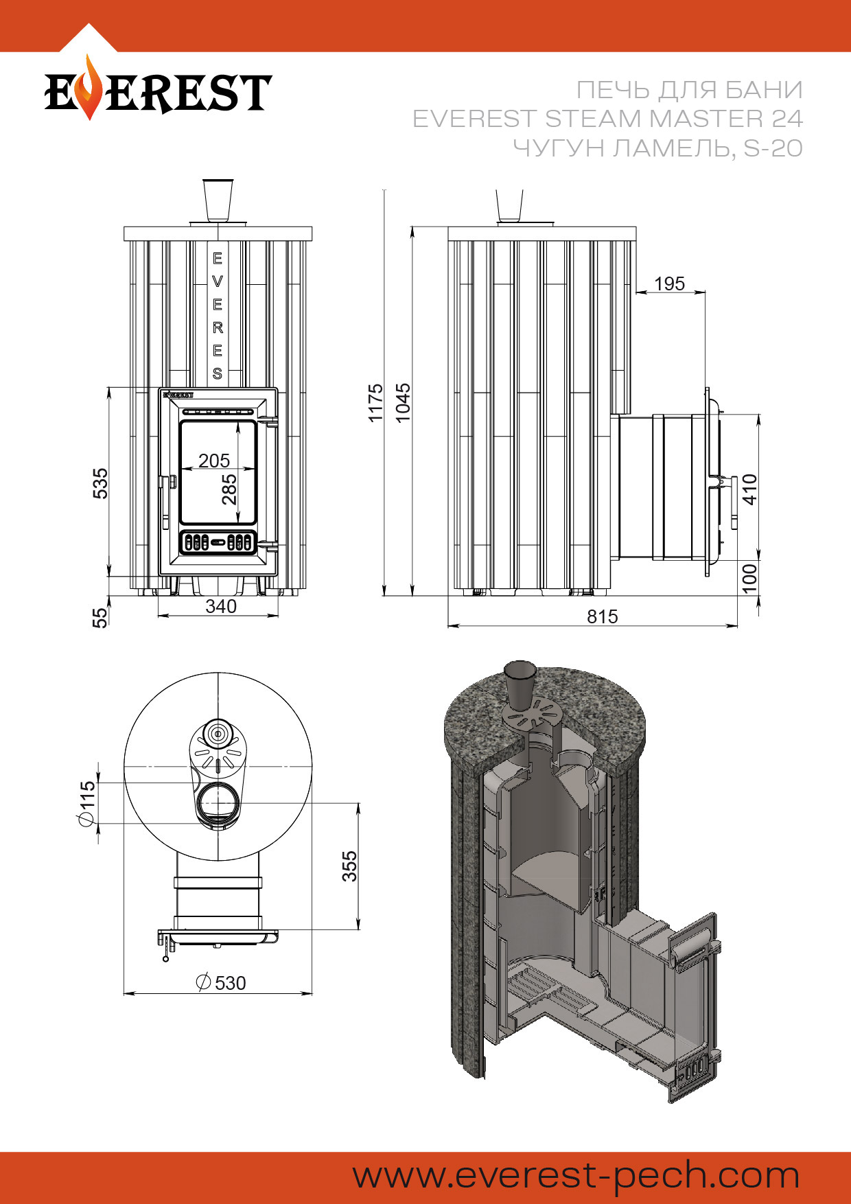 Особенности печи для бани Печь для бани Эверест "Steam Master" 24 ЧУГУН Ламель Талькохлорит, S-20: